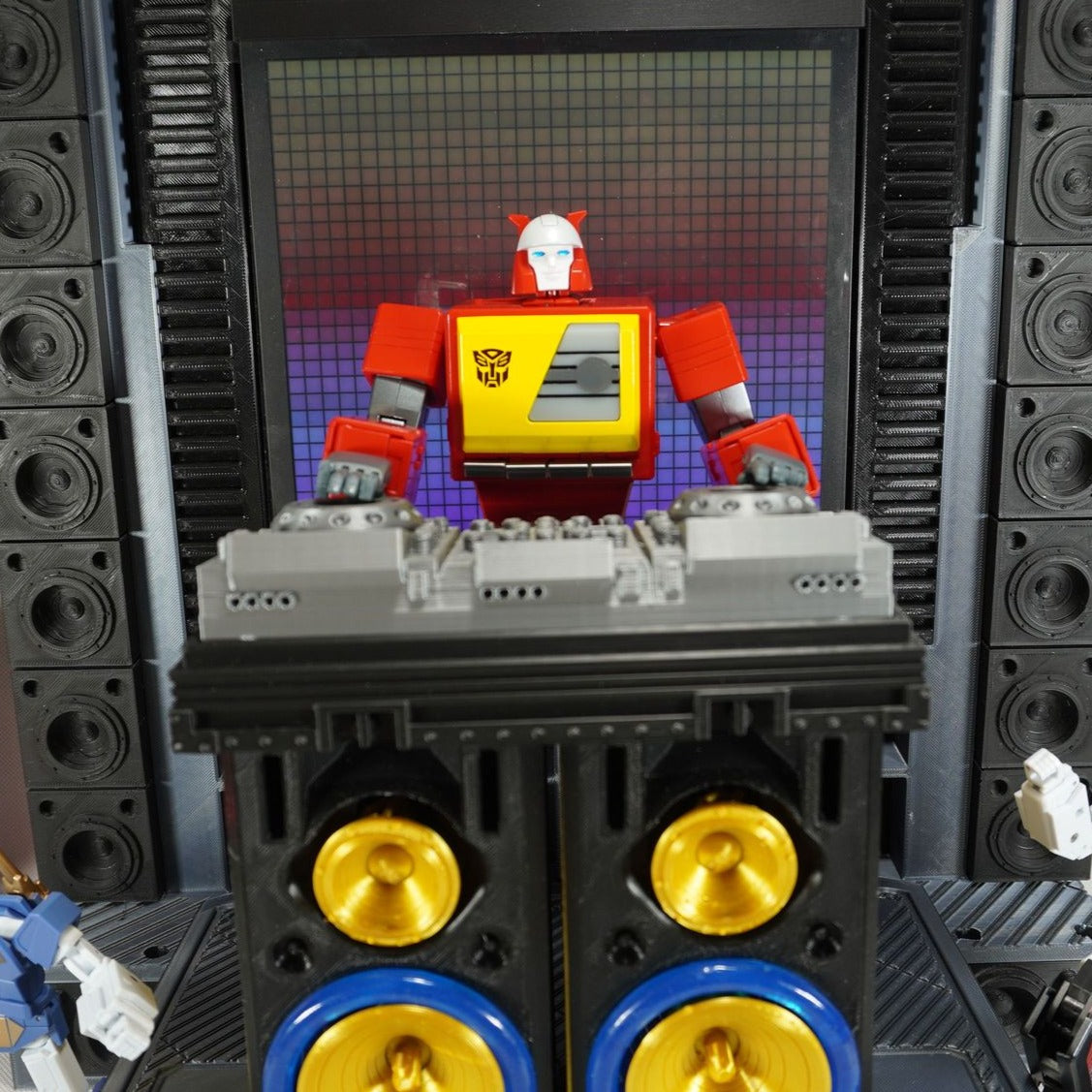https://youtu.be/5-dTIbGSLsg?t=744What better way to display your favorite cassette bot than with Nusupply's Wall of Sound.